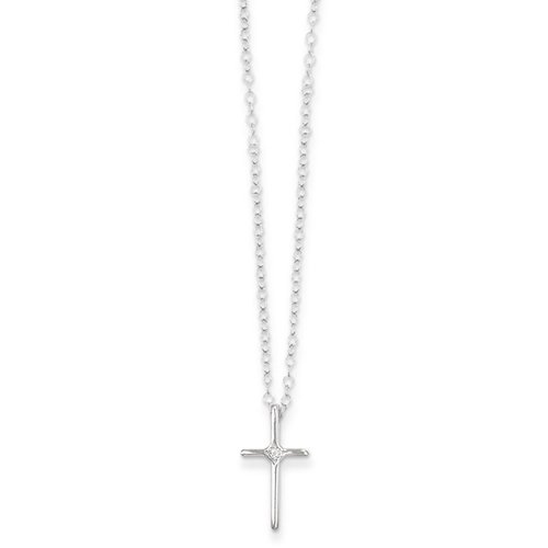 Image Name: Email Diamond Cross Necklace Round-Cut 10K White Gold