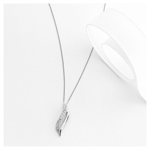 Image Name: 9ct White Gold Diamond Wave Pendant